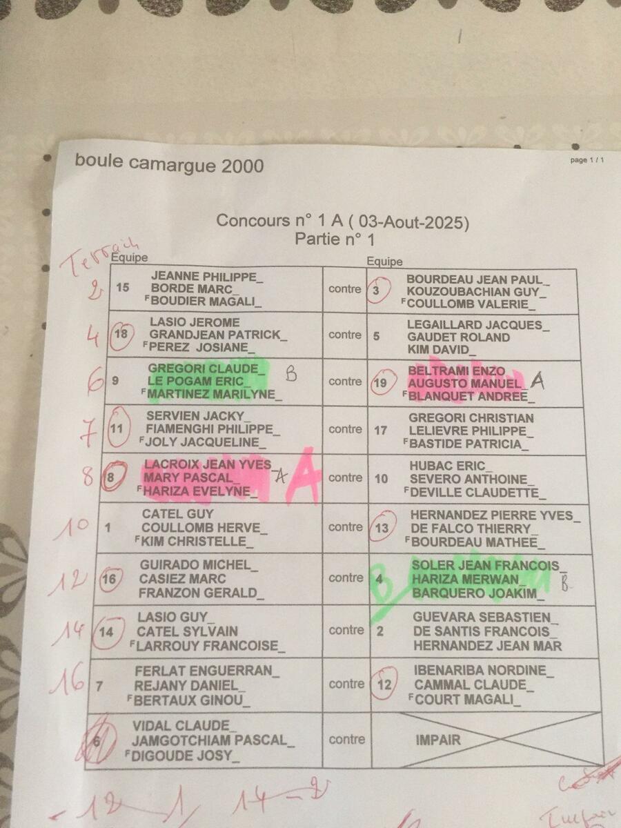 gagnant du concours A "Jean yves Lacroix/ Pascal Mary/Evelyne Hariza" et du B=Jjean francois Soler /Merwan Hariza/Joakim Barquero"